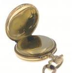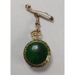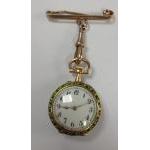 An 18ct 750 stamped and a decorative green enamel back pretty pinafore nurses watch with a 375 stamped pin - so an ‘all gold' nice quality watch…