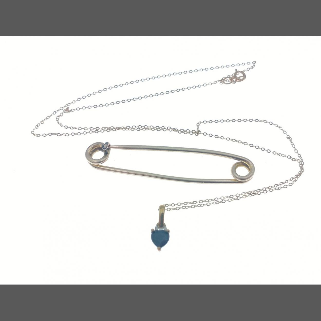 A 9ct stamped chain and 375 locket with blue heart form sapphire inset - gross weight 1.08g approx