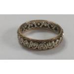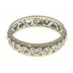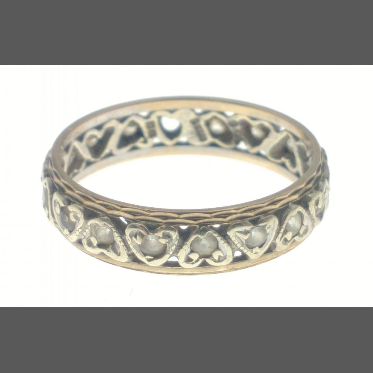 An unmarked yellow metal ring with small white stones all encased in love-heart form size P/Q weight gross 2.70g approx