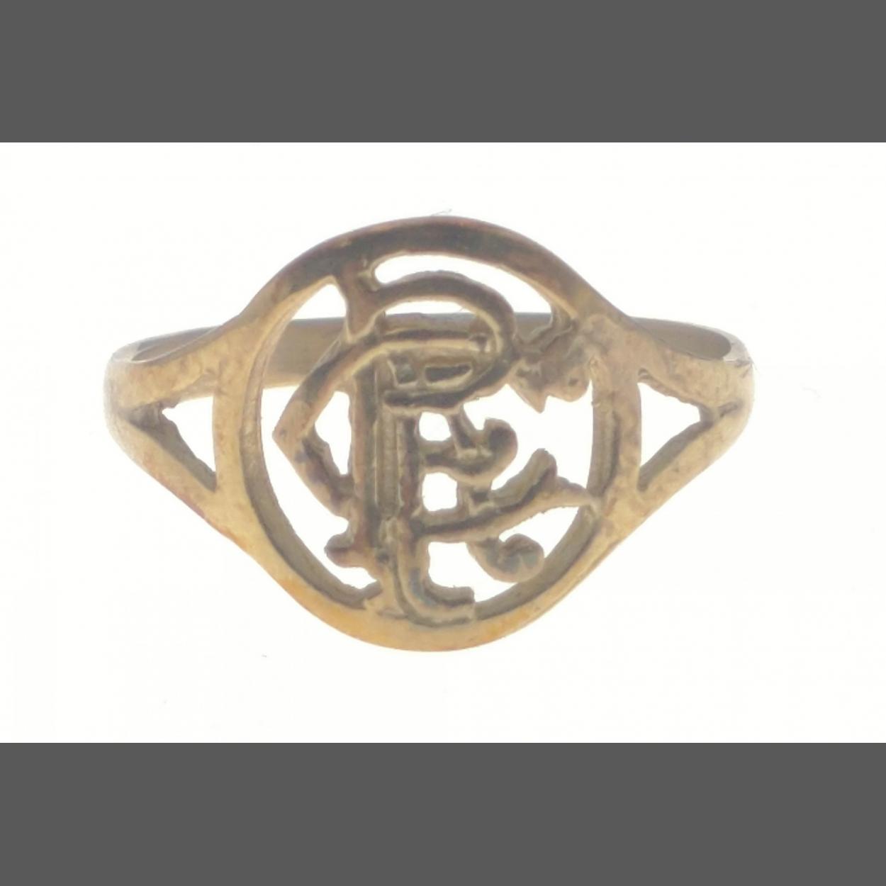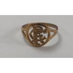 A 375 stamped yellow gold RFC signet ring - ring size J/K weight 1.32g Approx