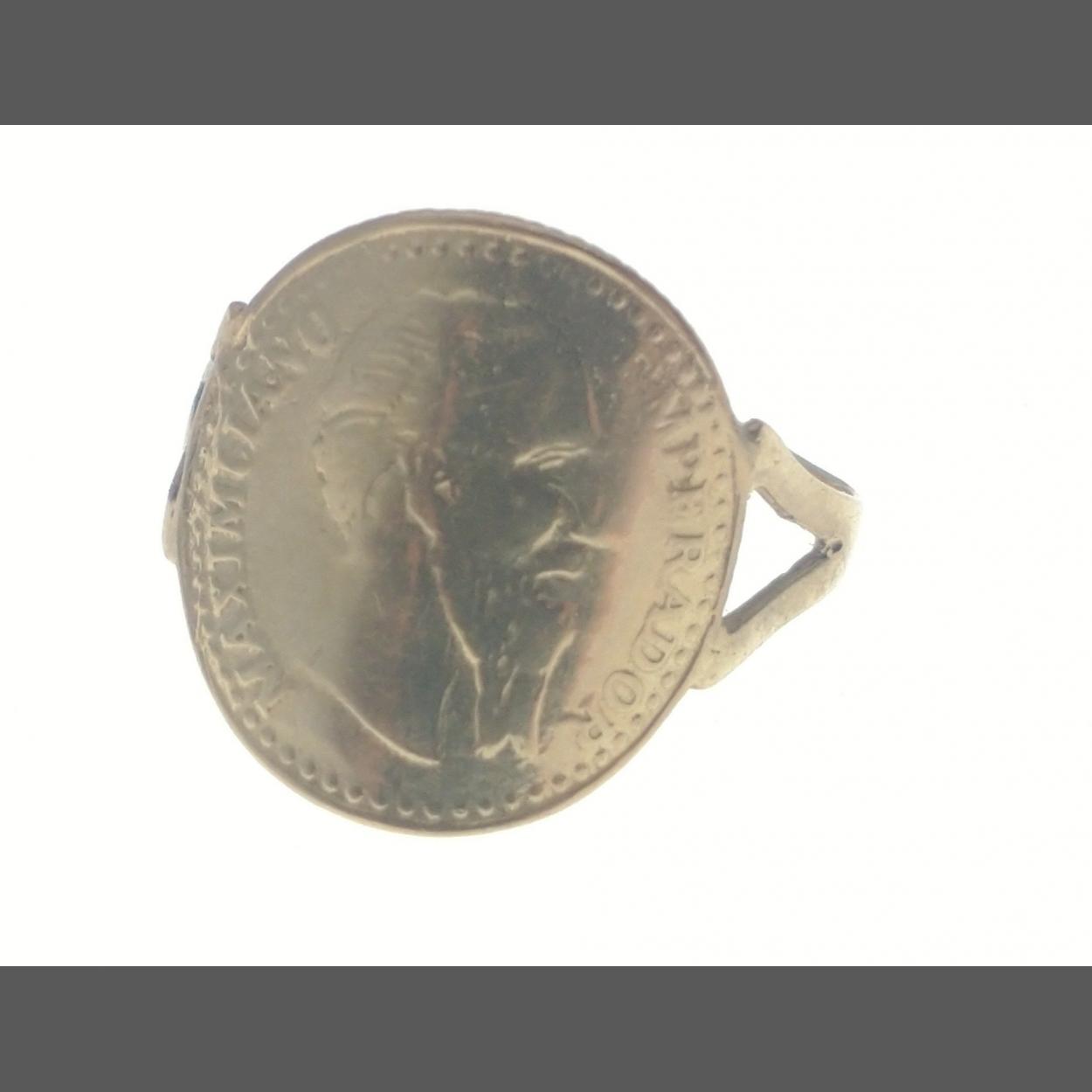 A MEXICANOS ESTADOS MAXIMILANO vintage ‘yellow metal' rounded coin and hallmark indistinct - ring size L - weight 1.90g approx