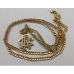 A 375 stamped RANGERS FOOTBALL CLUB pendant and chain - weight 8.53g Approx and chain length 62cm Approx - all comes within an RFC jeweller's box