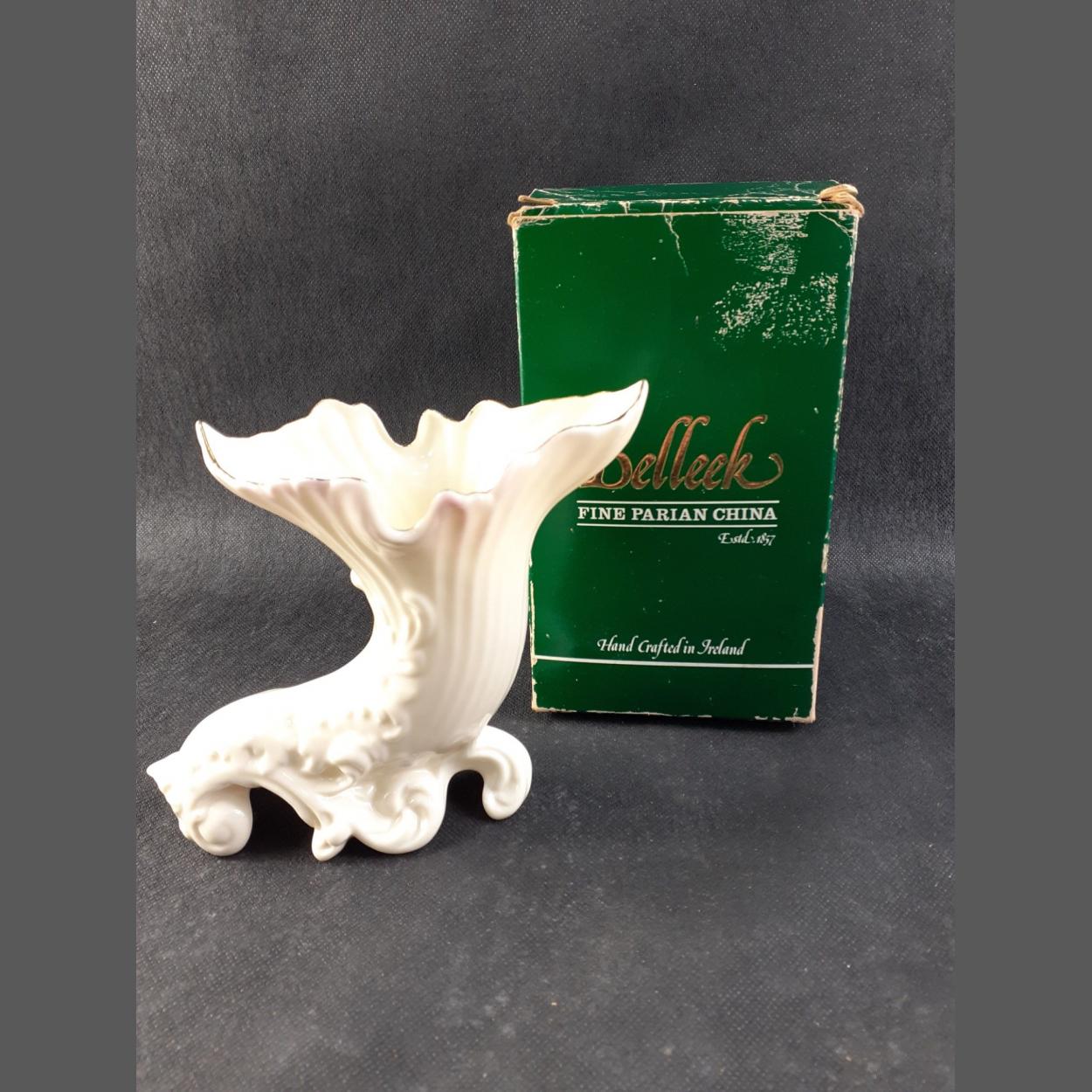 A BELLEEK fine Parian China FERMANAGH cornucopia vase (0538) 15cm high, in good condition