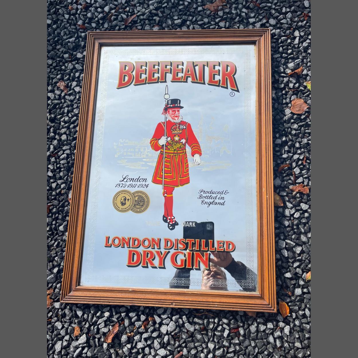 VINTAGE style BEEFEATER LONDON DRY GIN pub mirror - 3ft x 2ft Approx
