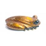 A rare Frogman Bronze FROG Sculpture by the artist TIM COTTERILL. This model GUMDROP in lovely orange bronze crackle colourway. Limited edition number 873/5000. A beautiful example of the artist's work, this cheeky wee chap is 6cm long