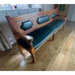 A VICTORIAN billiard wall seat upholstered in green style leather - dimensions 7ft wide x 18” depth approx
