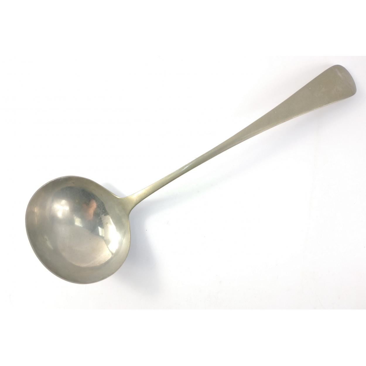 A large and imposing silver plated soup ladle by WALKER & HALL marked ORUBA SILVER. 33cm long approx.