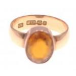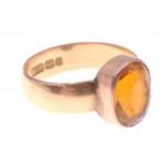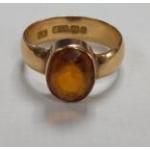An 18ct stamped dress ring hallmarked Birmingham to include a large oval orange stone. (Stone measures approx. 10mm width x 7mm depth.) Ring size is O/P. Gross weight is approx. 5g.