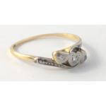 A ring stamped 9ct with heart-shaped centre set with 3 clear stones, size O, gross weight 2g approx