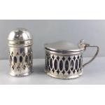 A small quantity of pretty EPNS items to include two 8cm pin trays and two condiment pieces with Bristol glass liners.