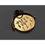 A small gold pendant on swivel mount with full 375 marks. Reads 'HAPPY BIRTHDAY' when spun. Total gross weight 1.17g approx.