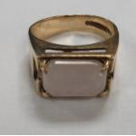 A gold ring with a white / pink stone. Full 375 hallmarks. Total gross weight 3.95g approx.