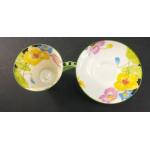 FABULOUS VINTAGE c1930's PARAGON Iceland Poppy pattern fine bone china teapot with lid (with a historical surface crack, not showing through to the inside to the side of the handle and is not noticeable until close inspection), also sugar and cream, six saucers and 5 cups, one cup has a historical crack at the base and one cup slight brown staining at the inside base of the cup - otherwise all others have no chips, cracks or signs of any damage repair