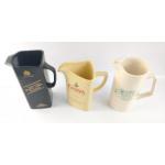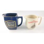 Five whisky water jugs to include ERDRADOUR: Smallest Distillery in Scotland (18cm), JOHNNIE WALKER: Black Label (19cm), GRANT'S (16cm), WHYTE & MACKAY (13cm), and THE FAMOUS GROUSE (12cm)