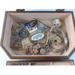 A wooden jewellery box with glass lid 25x17x8cm approx with contents of costume jewellery