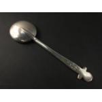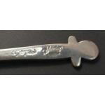 An unusual SHIRLEY Hand Made Williamsburg Pewter 1675 Joseph Copeland Chuckatuck Spoon 4" in nice condition with rubbed marks.