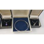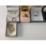 Some nice quality silver boxed jewellery stamped 925 including a baby's bangle, a silver heart pendant set with clear stones, a ring (size O) set with a red stone, a Thai adjustable ring, a pair of earrings stamped 925,