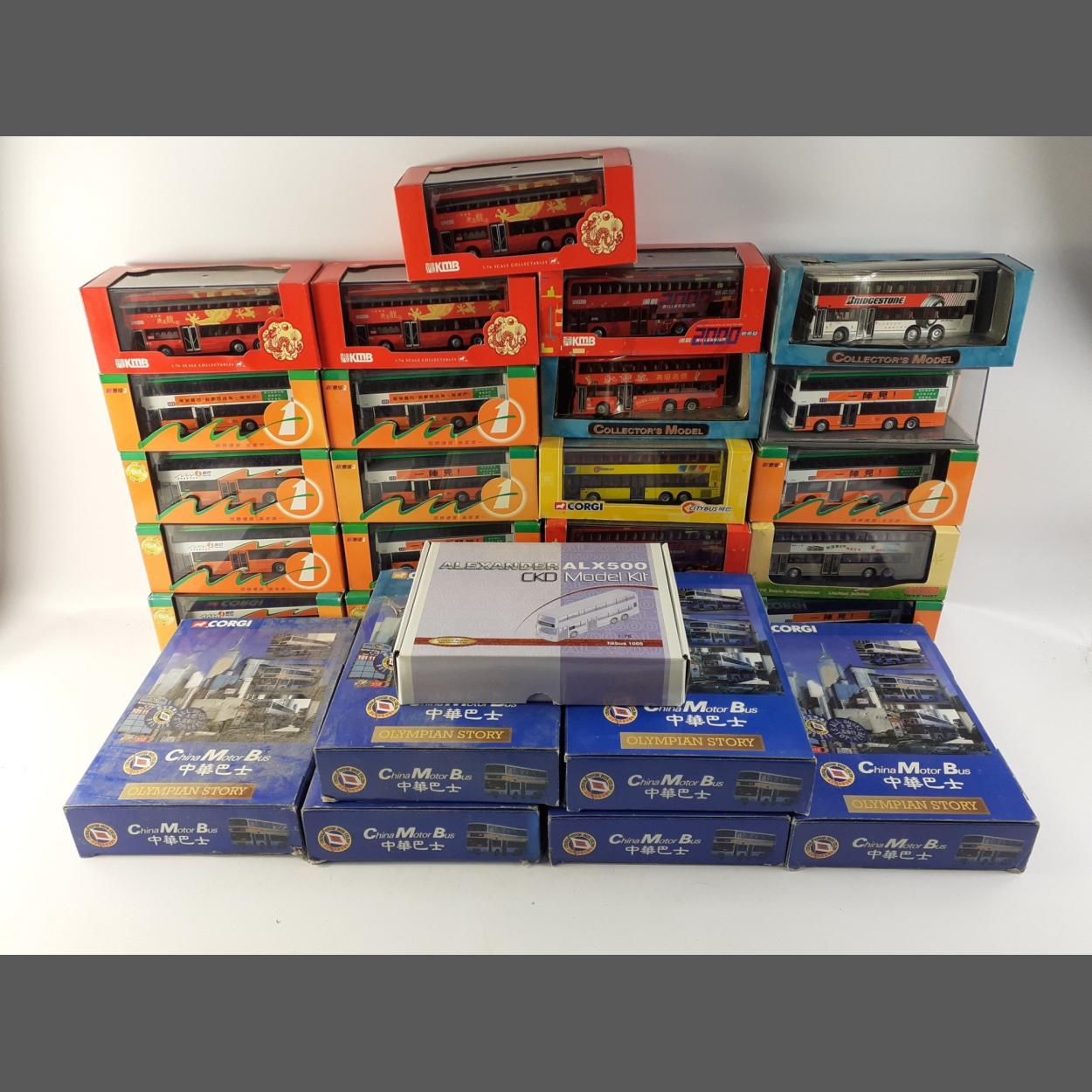 A collection of diecast bus models with an Oriental theme. Twenty eight in total, boxes have issues from long term storage.