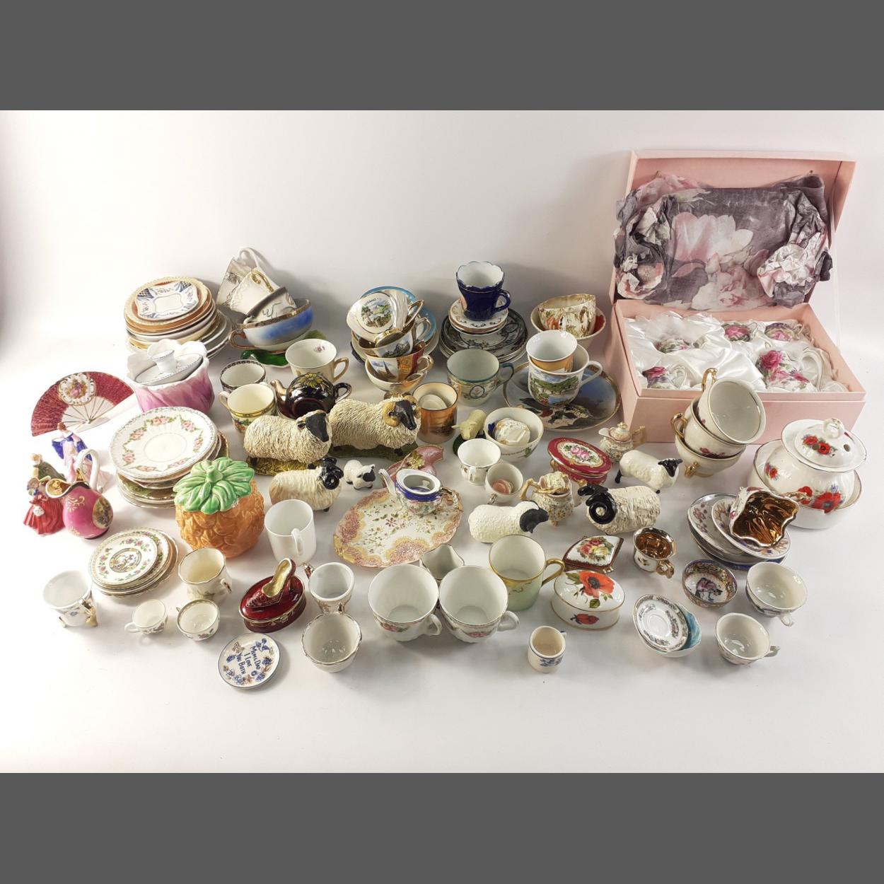 A mixed lot of ceramic ornaments, decorative items, trinket dishes, dolls house items, ornamental sheep by Stef's, a boxed Leonardo model and others.