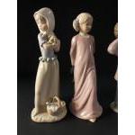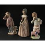 Three NAO figurines to include a girl with a puppy (22cm), a sleepy boy with teddy bear (20cm), a boy with a puppy and a teddy (19cm), plus a Spanish made girl (22cm) and an SBL girl with teddy (21cm). All in excellent condition