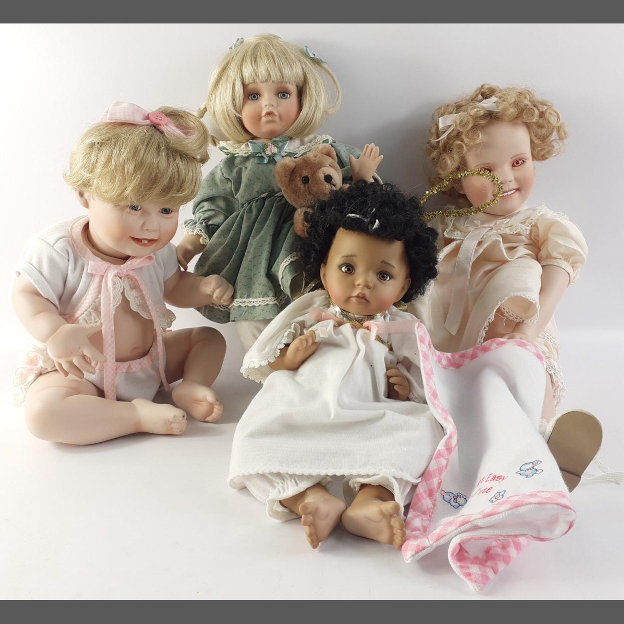Four quality porcelain dolls, one by ASHTON DRAKE, tallest sitting at 27cm approx