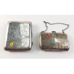 A vintage silver cigarette case with embossed front with initials, hallmarked for Birmingham 1916, has been damaged plus a small silver ladies purse with chain and green silk lining (damaged), hallmarks indistinct. Total gross weight 128g approx