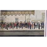 A limited edition picture by L.S. LOWRY titled "The Railway Platform" This is one of an edition of only 95 published worldwide and has been professionally framed and mounted. Supplied with a certificate of authenticity, signed by the Master Printer, along with a replacement valuation certificate for £1500. The original is currently valued around £2 million with this edition recorded as selling up to £2750 at auction.. H: 83cm W: 111cm D: 4cm