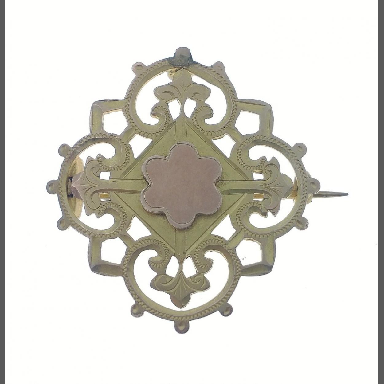 A 9ct 375 marked gold pin brooch 30mm across and weighs 5g approx