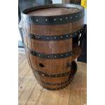 A FULL SIZED coopered barrel drinks and cocktail bar with door and one inner shelf - stands 3.5ft tall approx - as new condition - a heavy item!