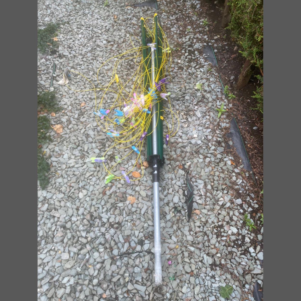 A garden clothes 'WHIRLY-GIG' in good condition to include some clothes pegs! - standing 5.5ft tall - will require to be cemented into the ground or similar