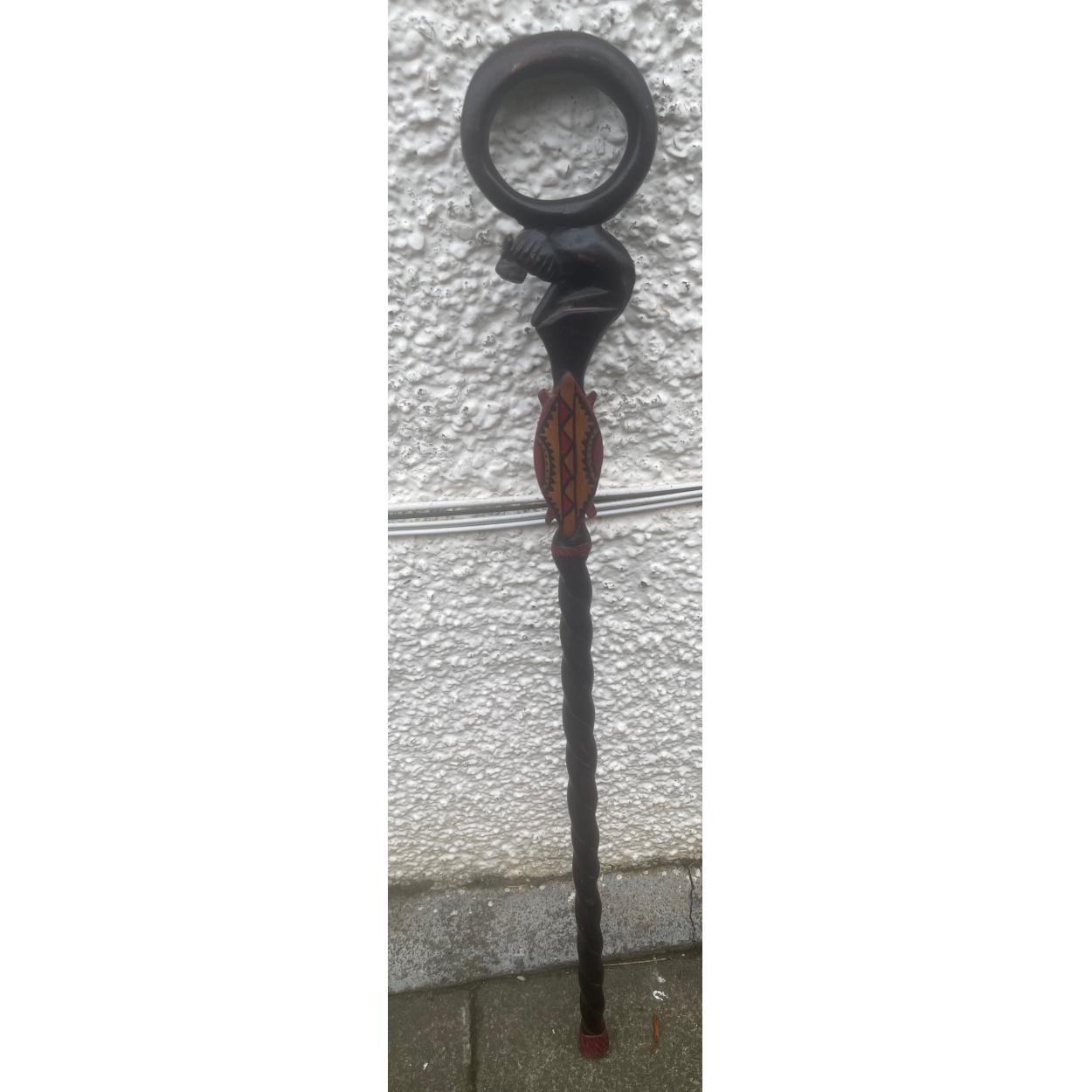 AN AFRICAN TRIBAL ebony walking stick 3.35ft tall