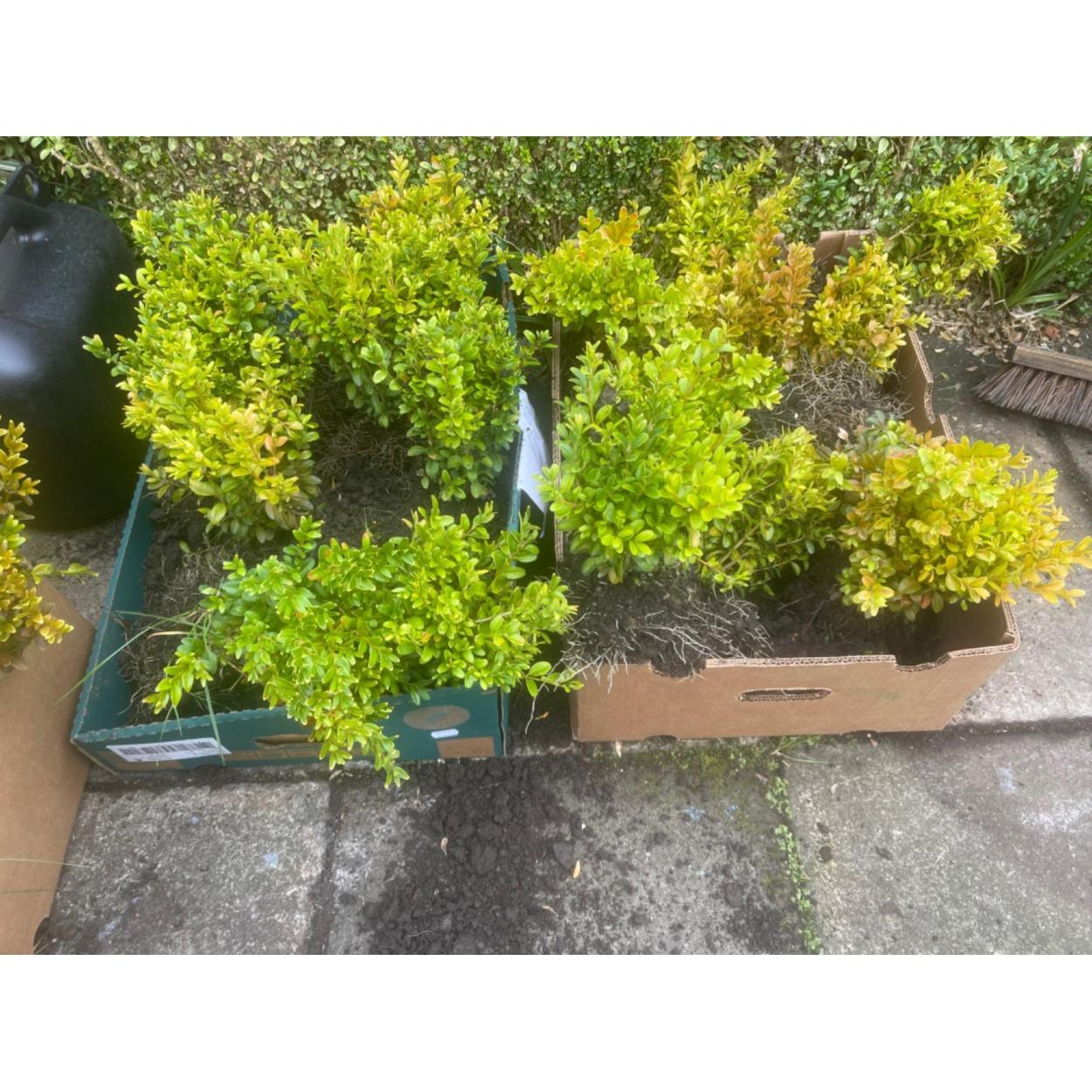 TWO boxes FULL of evergreen FORMAL BOX-HEDGING - just plucked from the garden 2 days ago - plants around 40cm tall each approx - 15 plants approx