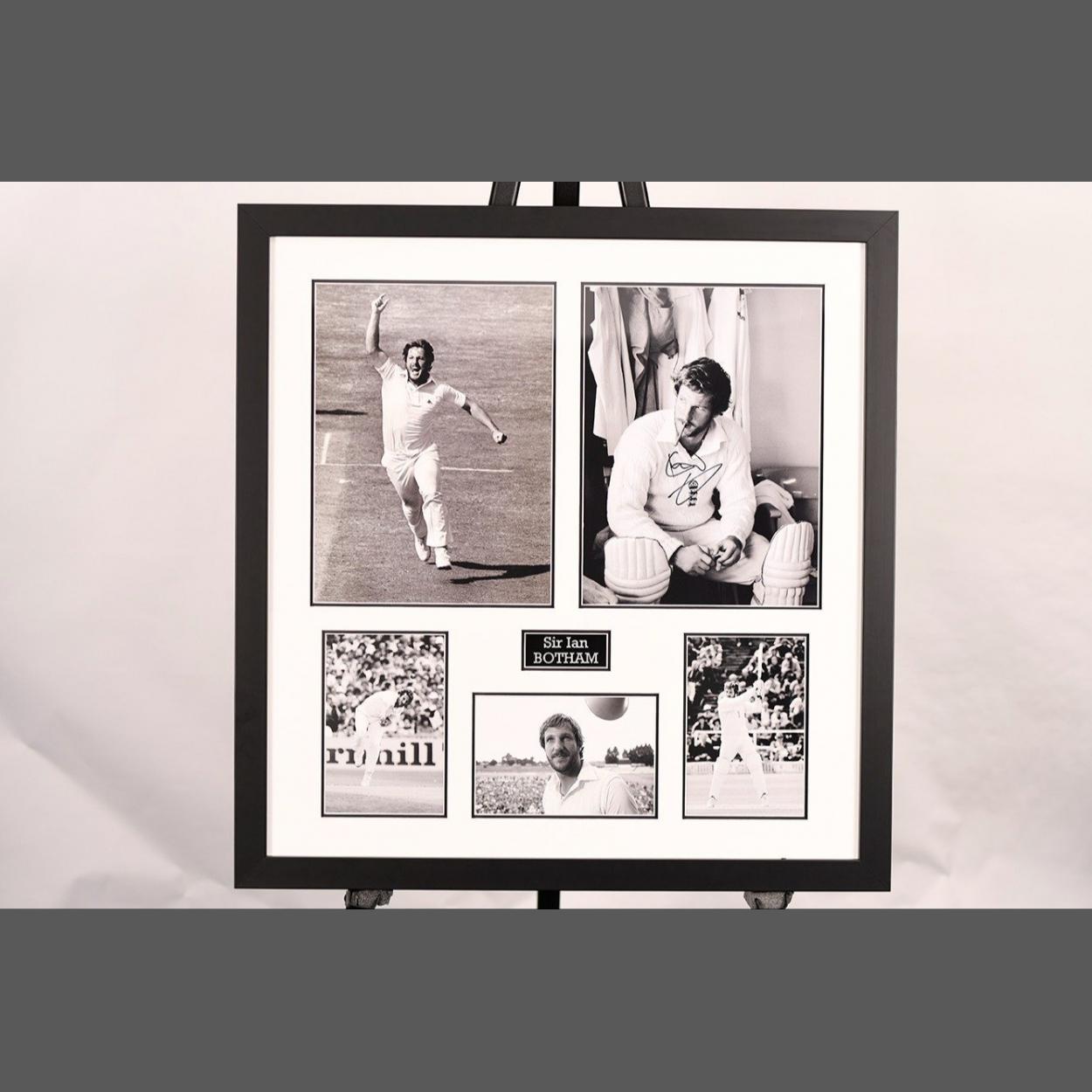 A framed memorabilia presentation of probably the finest English batsman ever SIR IAN BOTHAM. Within this lovely framed piece is an authenticated signed photograph. Note: This item will be supplied with a Certificate of Authenticity (Free of Charge). H: 84cm W: 81cm D: 3cm