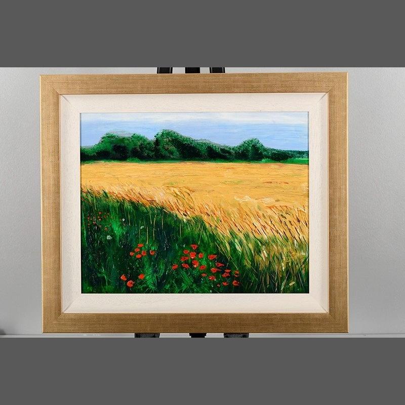 A poppies original painting on canvas by NEIL PETTIE titled Cornfield East Lothian. His great uncle was the moderately well-known Victorian artist, John Pettie R.A., R.S.A. (think of the old Crawford's shortbread tins with a painting of Bonnie Prince Charlie on the lid - he did that!) His exhibitions in the UK include: Essex, Surrey, Midlothian, Inverness and in Europe: Rome. He recently had the distinction of selling a painting in the RSW Annual Exhibition in the prestigious Royal Scottish Academy in Edinburgh.. H: 55cm W: 66cm D: 4cm