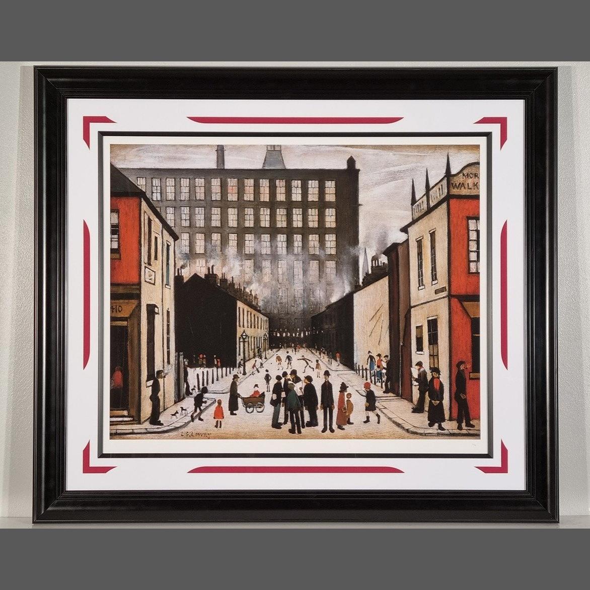 A framed limited edition titled "Street Scene, Pendlebury" by L.S. LOWRY with signed certificate of authenticity (signed by the Master Printer). One from only 95 published worldwide and has been professionally framed in a bespoke frame and mount. It will be supplied with a replacement valuation for £1700 (free of charge). Mint condition. Like the Post-Impressionists, Lowry was interested in recording the nuances of everyday life, basing his work on observations of the world around him. Inspired by the industrial scenes in his hometown, Lowry would stop and sketch during the day then develop a painting such as Street Scene at home. His direct and distinctive style led art critic Jonathan Jones to call Lowry a "modern primitive" to be ranked alongside such artists as Henri Rousseau. A fan of its stiff consistency, Lowry painted with oil paints all of his life, using the paint straight from the tube. Just as Lowry was fascinated by capturing the quotidian, he was also quite elemental in his choice of materials. "I am a simple man", Lowry once said. "I use simple materials: Ivory Black, Vermilion, Prussian Blue, Yellow Ochre, Flake White and no medium." Touches of this choice palette are visible in Street Scene, bringing the scene's realism to life to vivid, yet modest effect.. H: 94cm W: 107cm D: 4cm