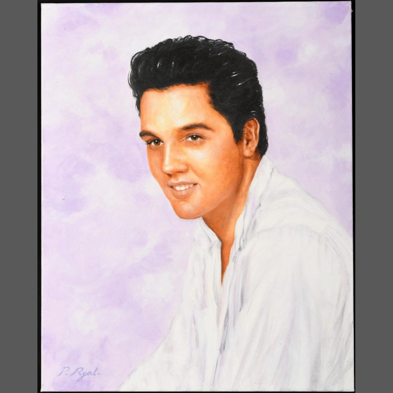 An original oil on canvas by English Artist P. RYAL. (AKA TERENCE VICKRESS) Study of Elvis. Ready to frame.. H: 76cm W: 61cm D: 2cm