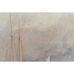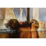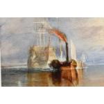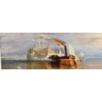 A limited edition on canvas of J.M.W. TURNER's "Fighting Temeraire" from a sold out published edition of only 60 on canvas Worldwide. It will be supplied with an a replacement valuation certificate for £1500 (free of charge). The quality of this print is of the highest standard, please see photographs which actually pick up the cracking in the paint from the original. Condition is excellent. Please note that the full title is `The Fighting Temeraire Tugged to her Last Birth to be Broken-up, 1838` The original painting was produced in 1839. Turner`s elegy for the age of sail and British Oak embodied in seamen, man-of-war and ships of the line, also ushers in the steam age. Sold like other outdated war ships for the price of her timber, the Temeraire is towed to the breakers by a steam tug. Much later, Turner`s picture was described as his first, almost prophetic idea of smoke, soot, iron and steam. Turner called it his `darling` and refused to sell it. He intended it for the National Gallery which sits in Trafalgar Square named after the battle in which the Temeraire had served and to this day the painting remains in the collection of the National Gallery.. H: 76cm W: 101cm D: 1cm