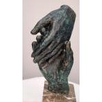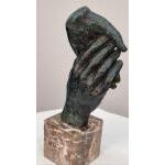 Bronze casting of hands with a verdigris finish on solid marble base. H: 22cm W: 9cm D: 6cm