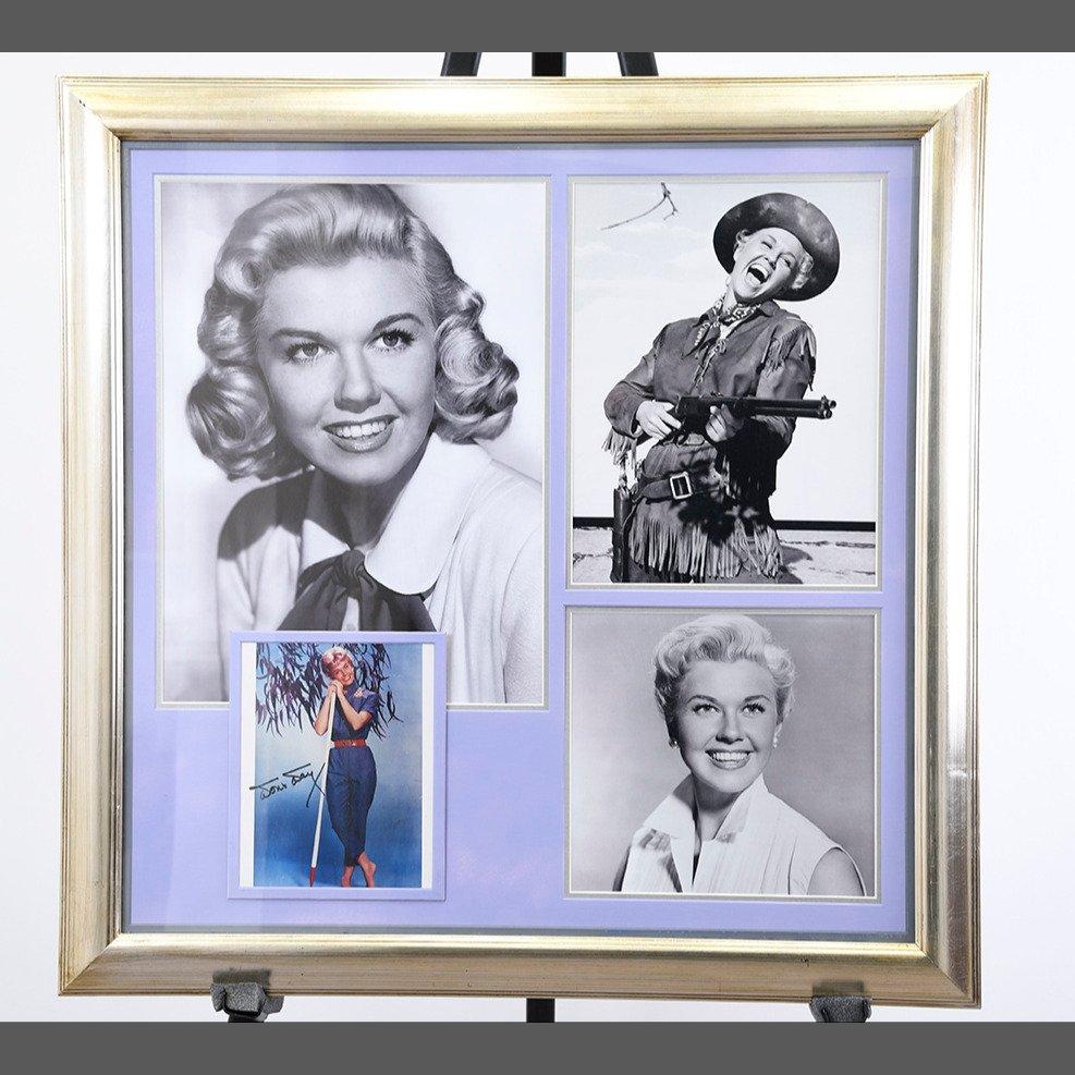 A lovely piece of framed memorabilia for any fan or collector. It has a personally signed photo by DORIS DAY within the presentation. Note: this item will be supplied with a certificate of authenticity (free of charge).. H: 87cm W: 86cm D: 4cm