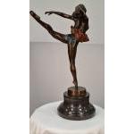 A bronze casting of a Ballet Dancer with coloured detail on solid marble base. H: 45cm W: 24cm D: 26cm