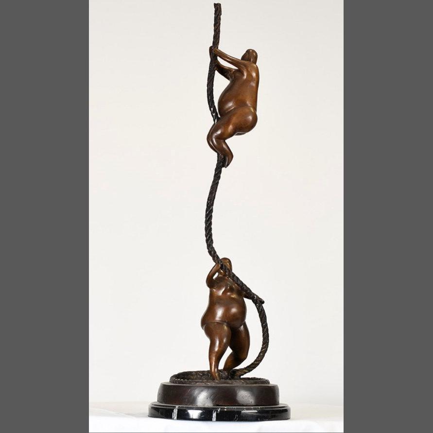 A fabulous modern design of two climbing art figures on rope. Cast in bronze on a solid black marble base. Very unusual piece of art.. H: 80cm W: 28cm D: 28cm
