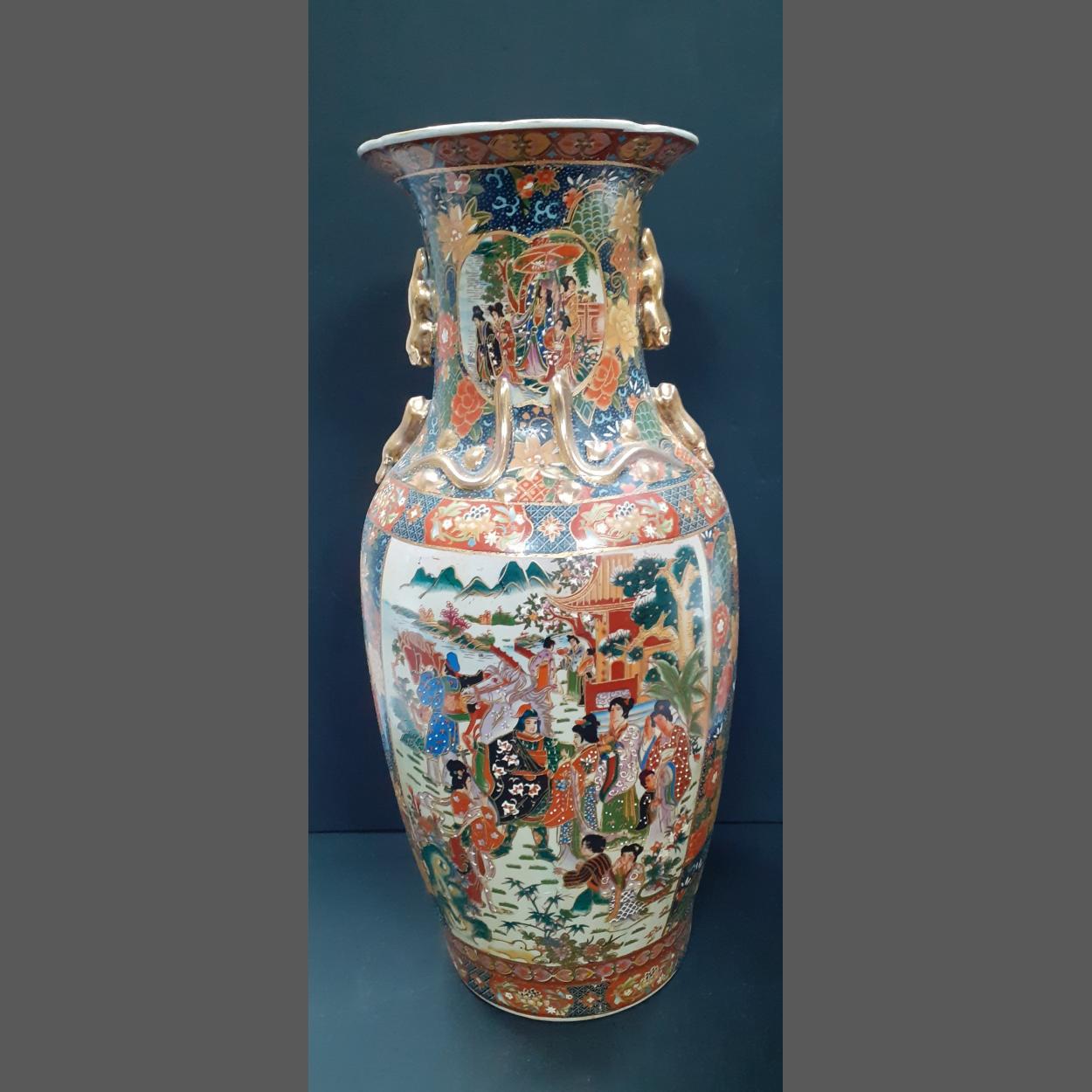 A substantial and imposing JAPANESE SATSUMA vase with wonderful embossed painted panels with gilding. Stands 59cm high and rings true with no chips, cracks etc.