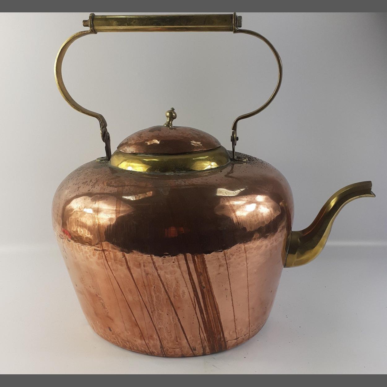 DECORATIVE! A SUBSTANTIAL and heavy vintage copper and brass kettle - dimensions 30cm height x 40cm width aporox