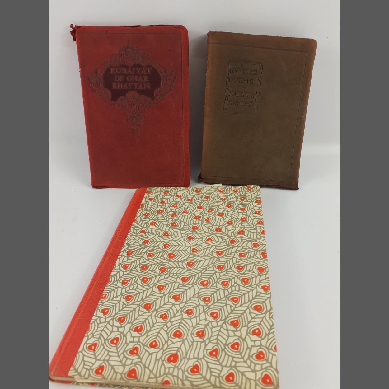 PEEBLES INTEREST! - Three vintage books to include a first edition hardback copy of HISTORIC HAUNTS OF PEEBLESSHIRE by Gilbert Rae, published in 1948 by Oliver and Boyd, a soft red leather covered copy of the RUBAIYAT OF OMAR KHAYYAM: The Astronomer-Poet of Persia published by Gay & Hancock and translated by Edward Fitzgerald. Also a copy of POETIC GEMS by Matthew Arnold in a soft brown leather cover with gilt lettering to spine, with coloured plates and floral wreath edges to pages, published by Collins possibly in 1940
