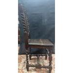 An ANTIQUE SCOTTISH JACOBEAN inspired handcarved oak chair with barley-twist and carved fruits seat-back supports - the chair back is a little 'shoogly' and the chair seat has a historical crack on the seatpad will require a little repair