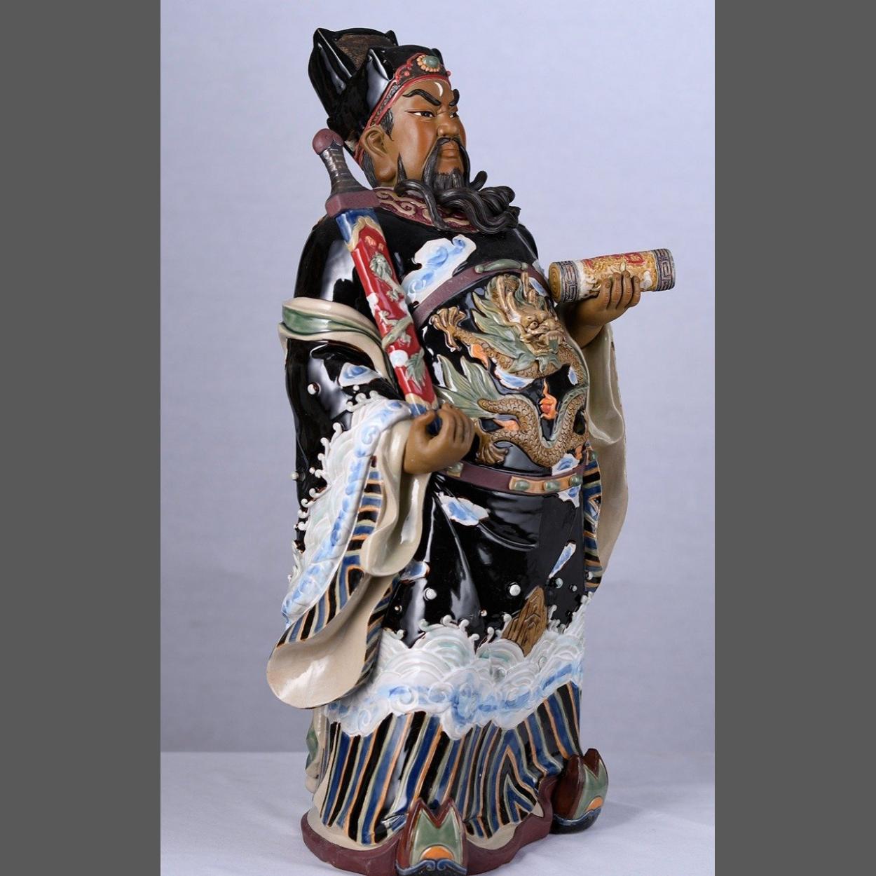 An original Shiwan figure with intricate and colourful hand decoration Origin Foshan Guangdong Province Circa 1990 Condition Good. H: 65cm W: 28cm D: 24cm
