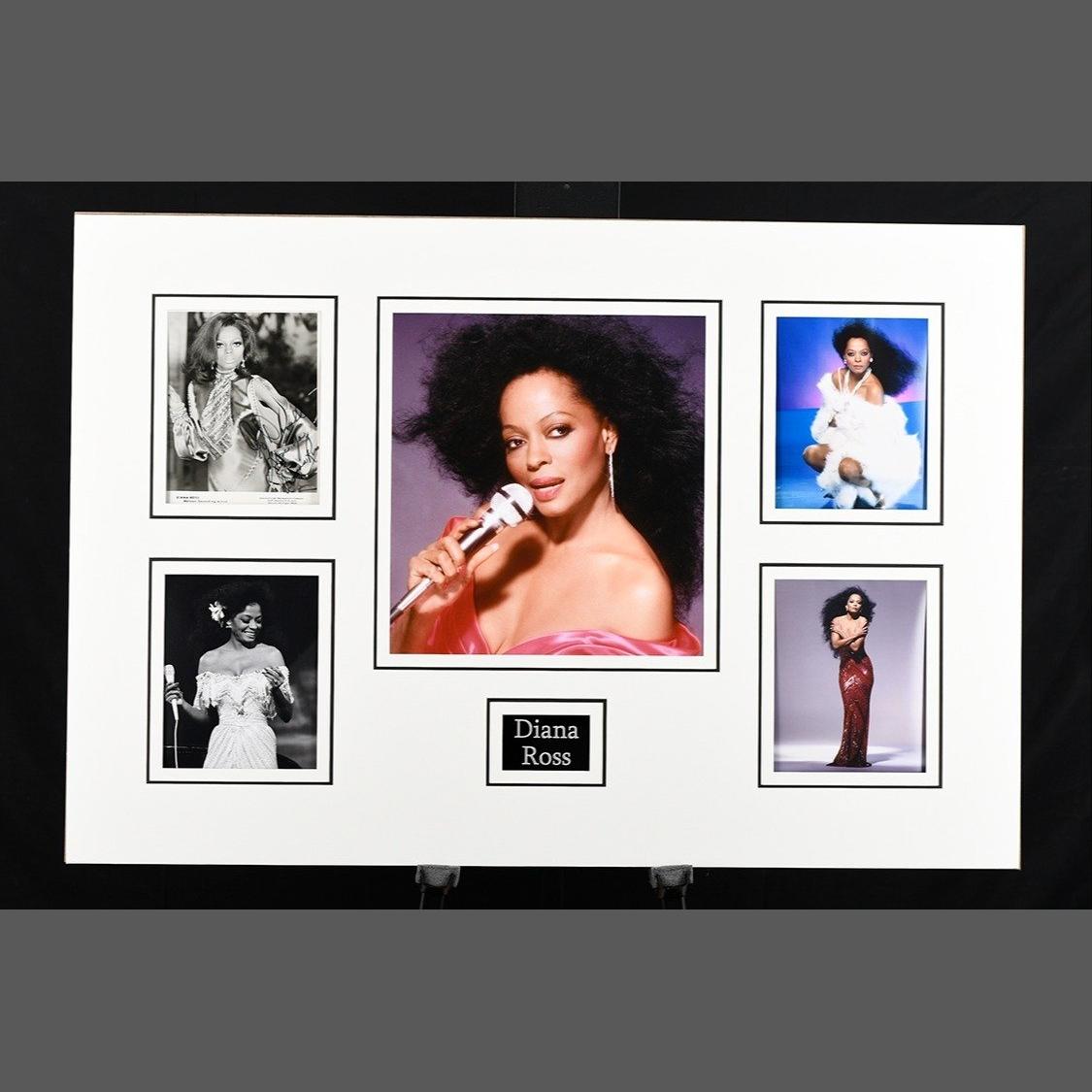 A unique DIANA ROSS signed photo presentation which has been professionally display mounted ready to frame if required.. H: 82cm W: 120cm D: 1cm