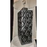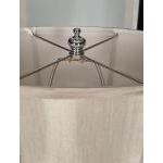 A porcelain round style lamp with gun metal grey finish. Display shade shown supplied free of charge. Condition very good and in full working order.. H: 77cm W: 43cm D: 23cm