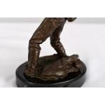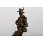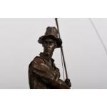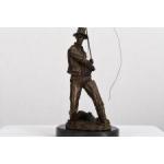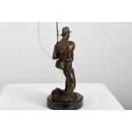 A solid bronze detailed sculpture of a fisherman on a solid black marble base.. H: 46cm W: 16cm D: 21cm