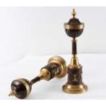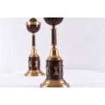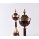 A beautiful pair of very fine brass mantle ornaments which are finished with a brown patina. These are very heavy due to the brass content used in the making of the ornaments. The casting is quite superb, check photos to see the detail.. H: 54cm W: 13cm D: 13cm